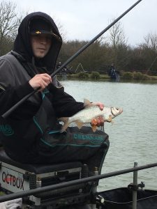 I set up three pole lines and a waggler. I started off dobbing maggots up the bank but only caught small roach. I then went on the waggler and had a few small roach. After an 1hr I’d only had a few small fish, so I went on my chop worm line and caught some nice roach and perch.